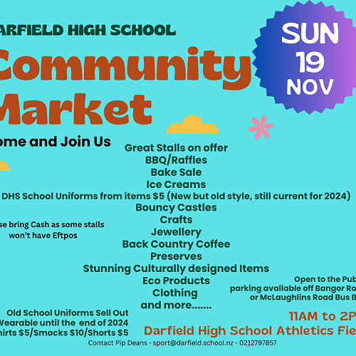 Visit this articleCome along and checkout our Inaugural Market Day - 11am to 2pm on the Athletics Field. Something for everyone.