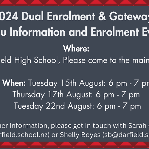 With course selection underway, students entering Years 11 - 13 may be considering Dual Enrolment or Gateway. If you would like to learn more, come to one of our information sessions.