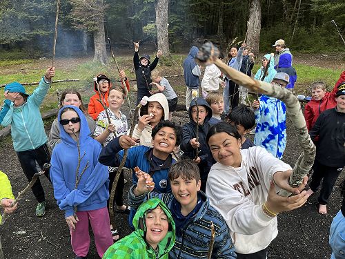 At camp we ate burgers, hotdogs and nachos for dinner. Our favourite dinner was nachos, because they tasted so good with the melted cheese and crunchy cheese nacho chips! On the day we had nachos, we also got to roast marshmallows on a campfire and turn them into smores. They tasted incredibly good and they were also the first smores we had ever eaten, so they tasted like the most amazing sweet treat in the world. The food at camp was the best!