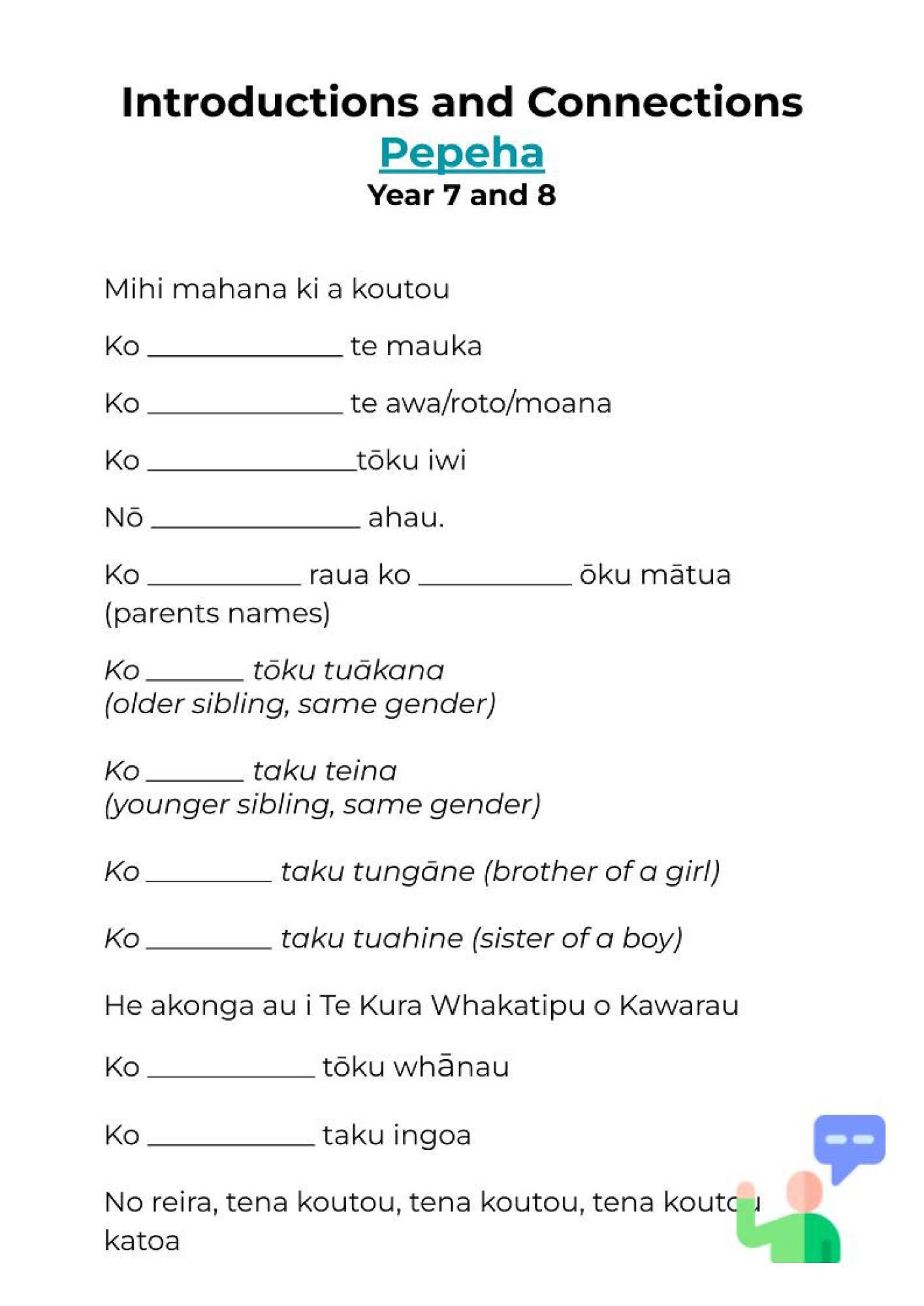 We have developed a progression of Pepeha for across the school. Pepeha is a way to introduce yourself in Te Reo Maori, making connections to your whanau and important places, as well as connections to the people you are speaking your Pepeha to!