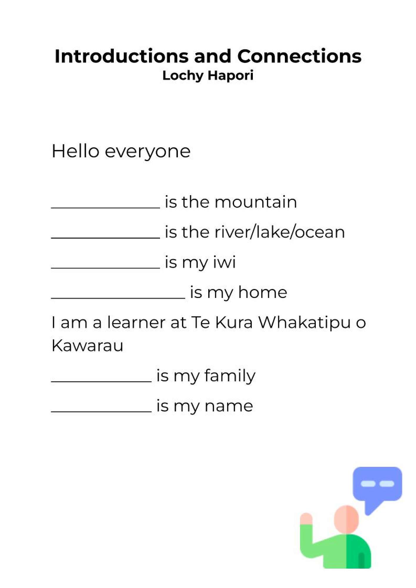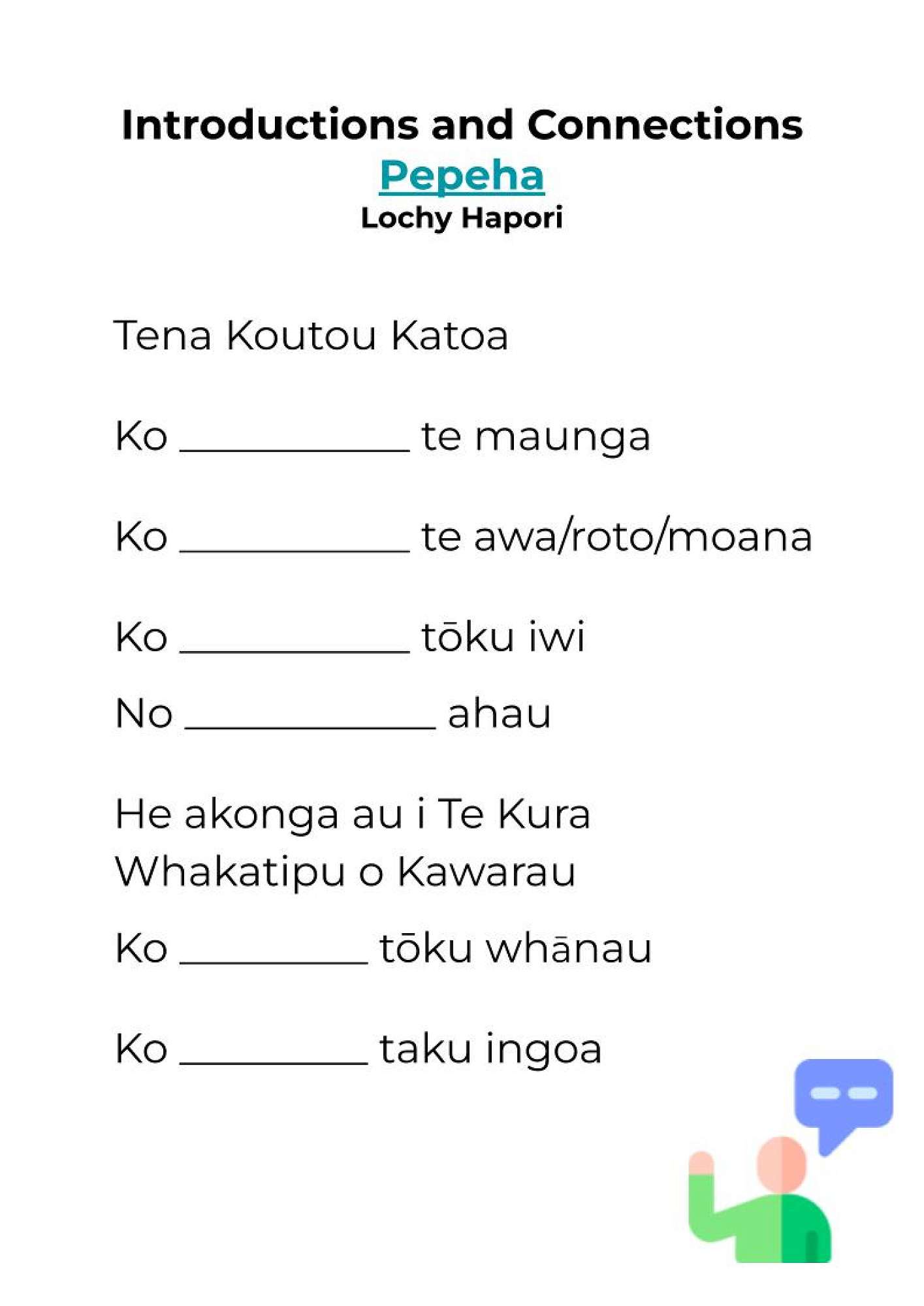 Hopefully your children are coming home and discussing this with you. Alta, Lochy and Bayonet have already started their Pepeha work, and Hope are looking to start this later in the term.