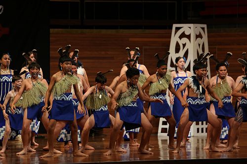 Te Oraka Kapa Haka is introduced by their emcee before their entrance to the stage at the Tūhono Competition. Pride and Passion in abundance.