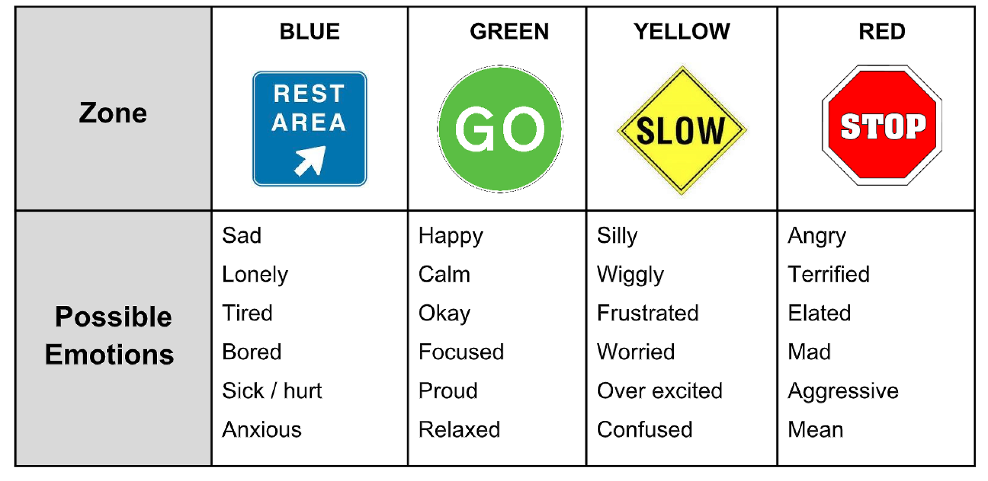 ZONES strategies can be used at home and school. It is important to note that everyone experiences all of the zones—the Red and Yellow Zones are not the “bad” or “naughty” zones. The Green Zone is considered optimal for learning and working well with others.
