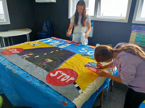 Elia Vukona, Hollie Ormsby, Harper Patterson and Lilah O'Neill are the creative thinkers and artists for the Te Puna School banner this year. A very stunning and carefully executed piece of work. Thank you to them for their effort to make the banner one which we are very proud to carry.