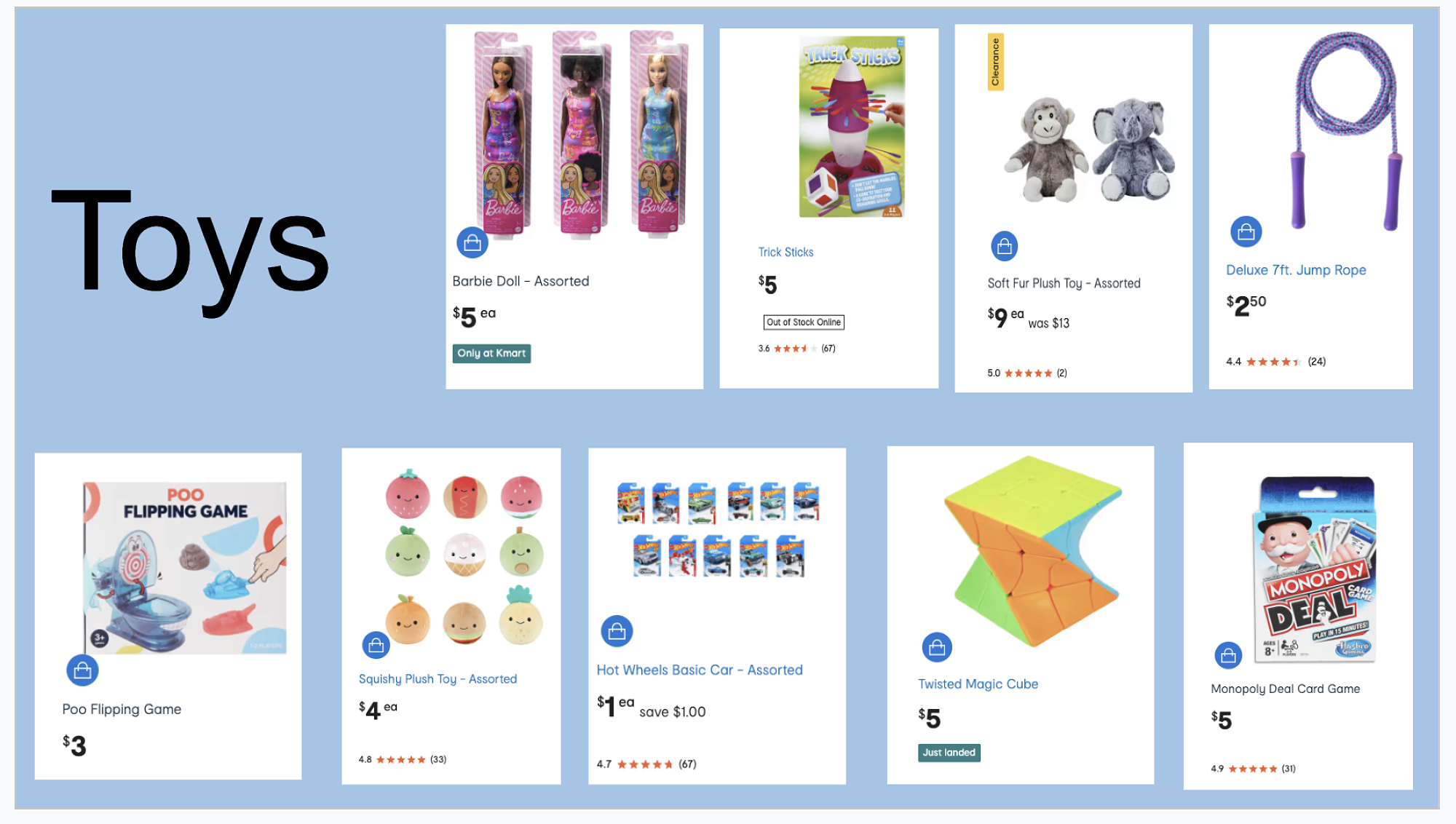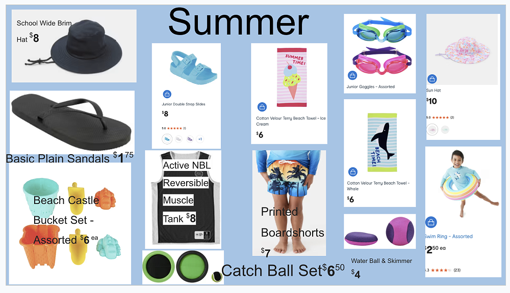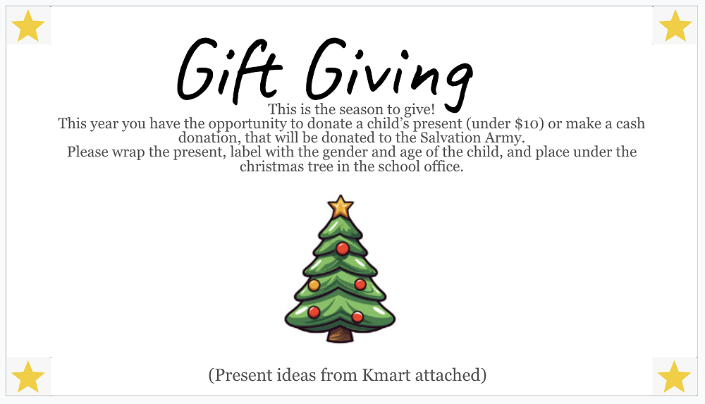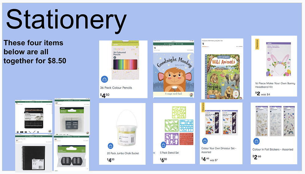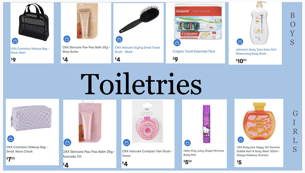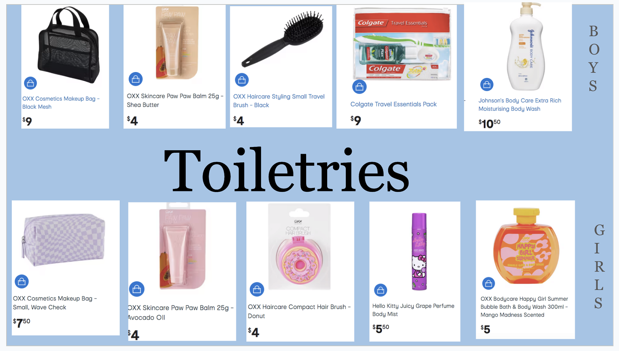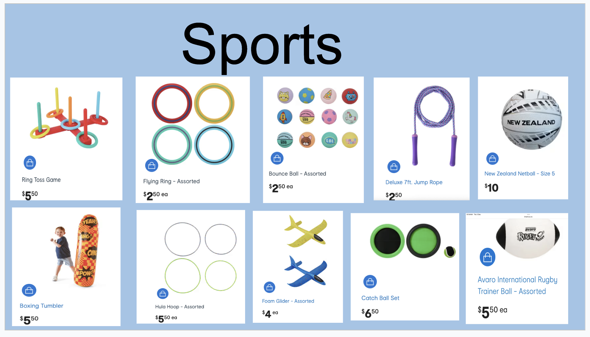 Here are some possible ideas of items - researched by the MindPlus group. They visited the Kmart website and found items that they thought would be loved by children. They chose items that would hopefully last and could be used by a variety of age groups.
