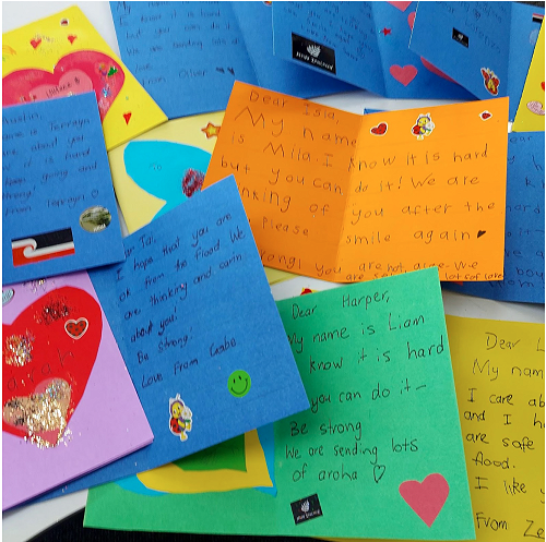 So, we made them personal cards and sent lovely messages to Room 3 at Nelson Park School. The children showed so much empathy when we talked about the cyclone and what some families had lost.