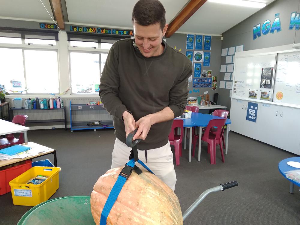 The giant pumpkin from our school garden has FINALLY been weighed.