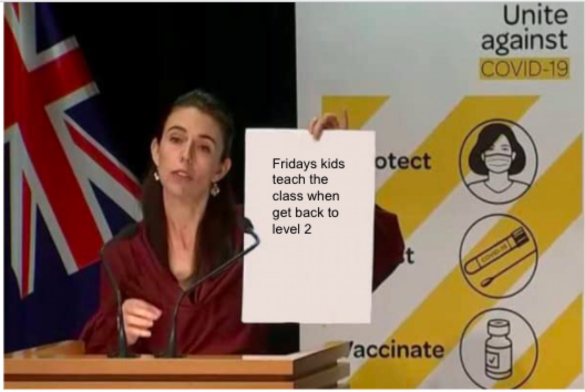 Last week Prime Minister Ardern held up a small sign with a graph highlighting New Zealand’s response and effectiveness of our lockdowns. The image was then taken and a number of creative memes were created from this.