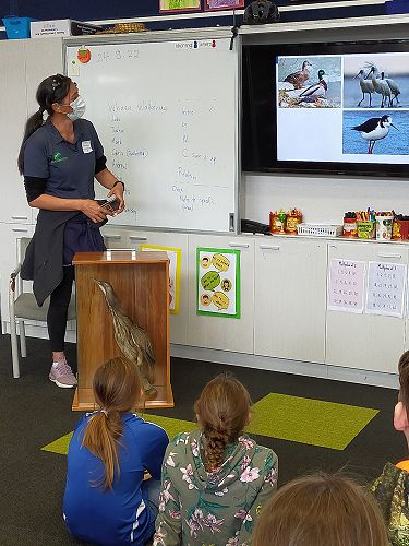 Room 11 and 12 were visited by the facilitators from the BCA Wetland Education Programme last week. This is a new programme run especially for Year 5/6 children. They will be visiting I'anson Reserve next week so they were given a brief rundown of what a wetland is and some of the important plants and bird life.