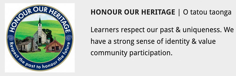 The imagery in our Honour Our Heritage value reflects our Te Puna history.