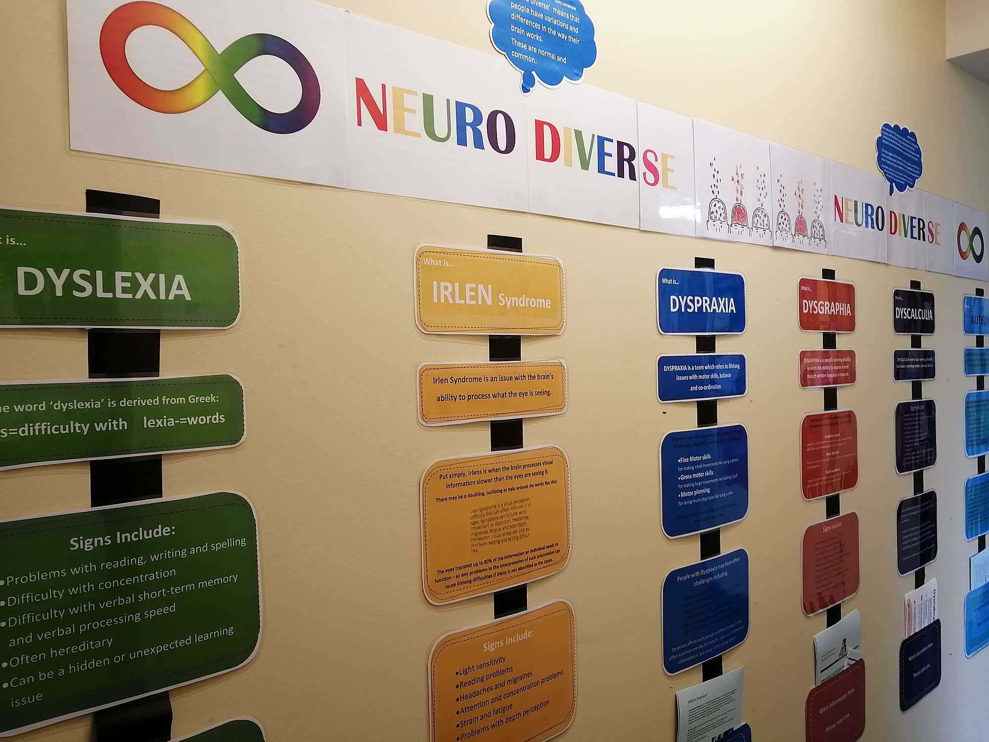 Included in this has been the creation of a policy and a charter outlining the importance of having a learning environment which actively caters for the needs of these learners and provides a safe place to learn. There are displays throughout the centre that acknowledge that, although there are many challenges learners face, dyslexia is a strengths-based condition.