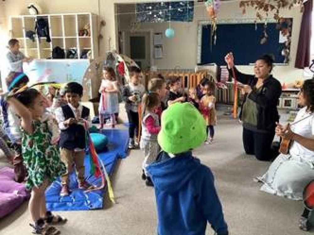 Last week we had our annual end of year party. We had Loopy Tunes band come and play music and sing with us. All the children had a lovely time dancing and singing. We were presented with a wonderful piece of art created by Danielle one of the Hagley students. The painting has captured our relationship with Hagley College through the imagery of the puna wai /streams, and the diversity of our community through the national flowers. We will display this in the new preschool.