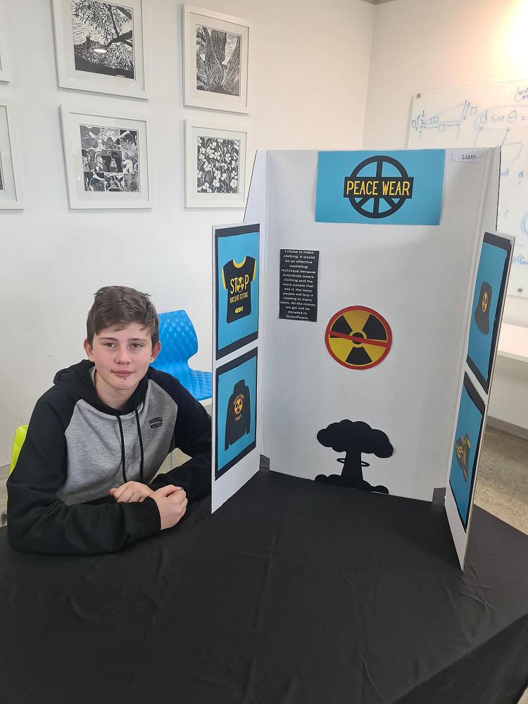Students in 10HSC used ‘Nuclear Free NZ’ as the theme for their first connected showcase of the year. Students were tasked with coming up with an idea for a way that they could take action, be a change maker and promote Nuclear Free NZ. They could do this by placing themselves either in the 1980s, in the time of nuclear free protests and the Rainbow Warrior tragedy, or in the now to ensure that the message was still out there promoting why we need to keep our Nuclear Free stance here in Aotearoa. We gave no set guidelines other than that students needed to be able to explain the purpose of their action and how it would be effective. There was an incredible range of ideas that students explored and created. This provided students with the opportunity to utilise strengths and interests that they may otherwise not have had a chance to use in our usual classes. We had everything from board games, badges, clothing designs, magazine articles and even a heavy metal song and supporting video clip – all of which had a message of support for a Nuclear Free NZ.