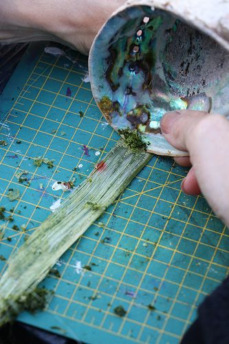 We visited the whare where we were taught how to harvest the herekeke. We spent a day extracting the muka from the harekeke using nit combs, paua shells and a traditional shredding technique taught to us by Julie.