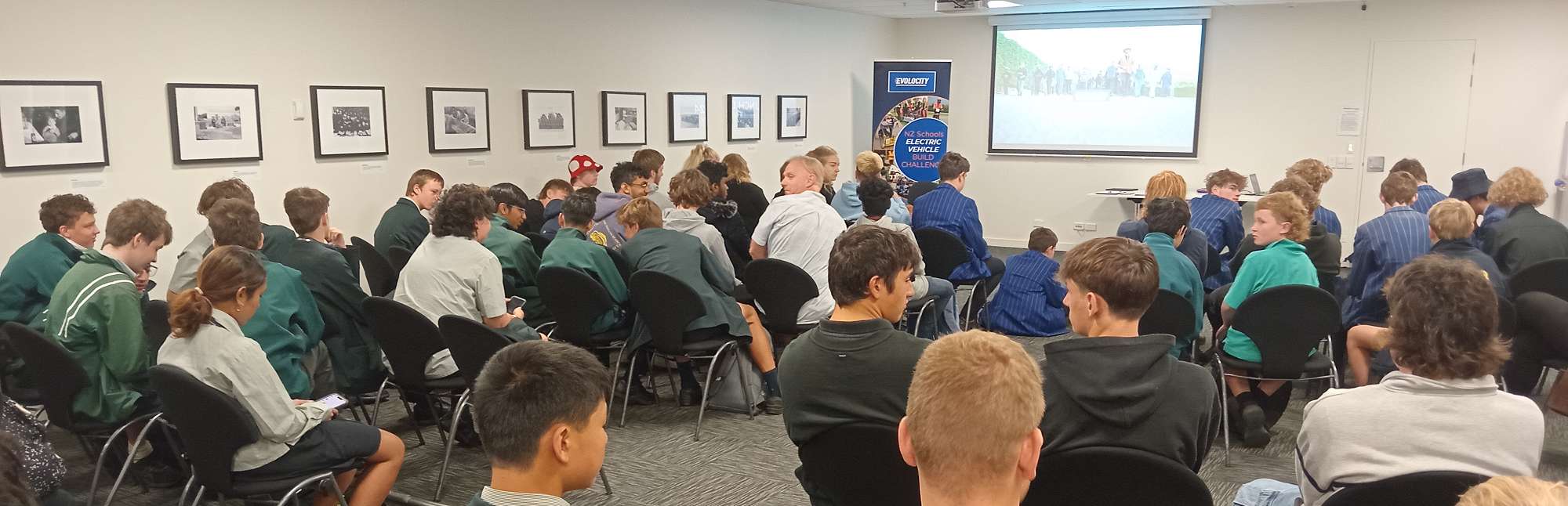 The 2024 launch of the Evolocity took place at the Airforce Museum of NZ, Wigram on the12th March. Six of our students attended. Vishan Amarnath, Mushroom Angelo, Jayden Edwards, Andre Hamilton, Thavishka Pahala Ralalage, and Gilby Shepherd. The event was organised to introduce the Evolocity programme.