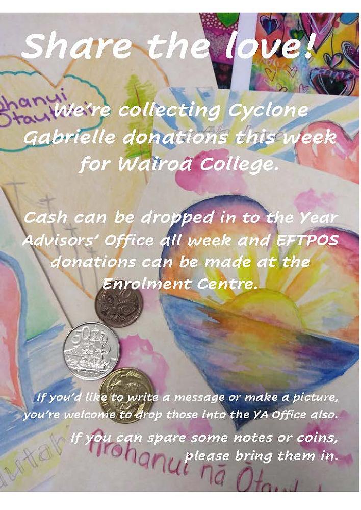 This year I teach a Year 12 Hauora class in the Wainuku wellbeing space so it is really nice for me to experience the spaces first hand and see it in action. It has taken some getting used to with its open plan style. I have to say though the acoustics are excellent, the furniture strategically placed in ‘zones’ and students have the option to work collaboratively across spaces. Last Tuesday my class collected money to support Wairoa College, in Hawke's Bay, which has been greatly affected by Cyclone Gabrielle, and it was a great experience for all. The students gained an appreciation for doing your bit for a cause and by having to contribute they recognised that we all play a part in supporting other communities in need. We collected $600 across those classes in about 40 minutes. I have added a picture of some students counting their donations on the floor of the new space. If you would still like to donate you can do so through the enrolment centre (they have eft-pos) or through the school bank account number with the reference Wairoa. Attached is a pdf file with our banking details. I plan on connecting students from my hauora class with students from Wairoa College to pass on the total and to see how they are doing. I am really looking forward to this happening.
