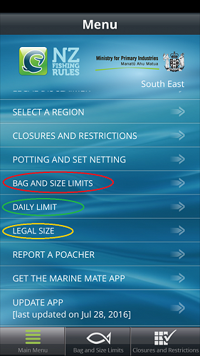 rulers and measurement for checking legal sizes of fish, lobster, paua and scallops.