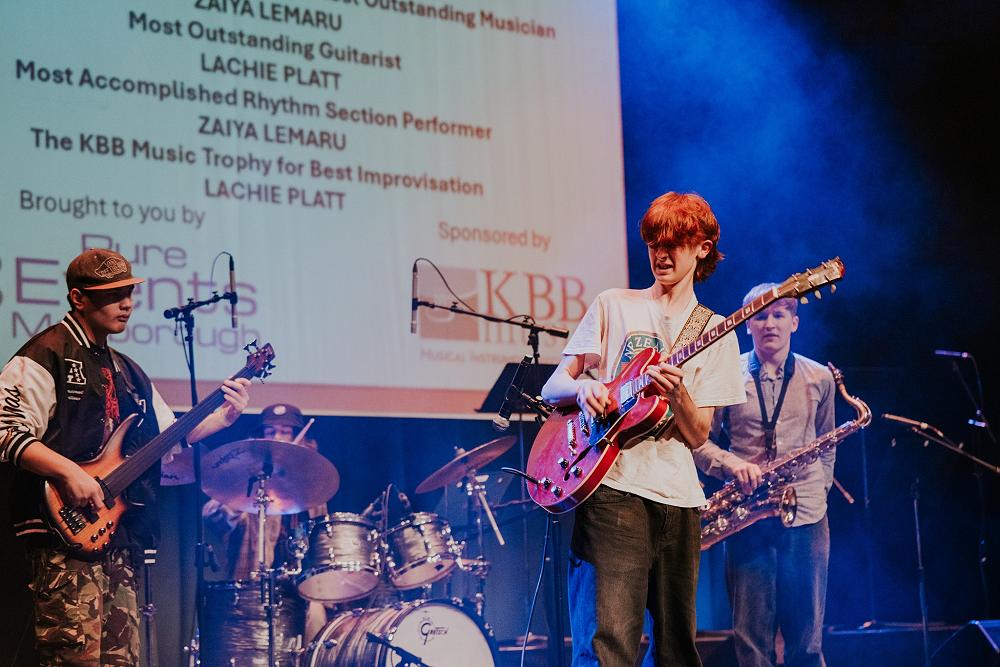 The band performed at multiple venues in Blenheim, Raupara and Picton during the week. A solid performance in the Wednesday competition was well received by the judges, who were later to award the band a Gold award. The next steps advice from the judges centred on the band improving its capacity to play interactively in live time. Over the next few days the judges heard the band play at venues where they put that advice into practice with stunning results. At the Saturday evening grand finale Gala Night (held at ASB Theatre in Blenheim) the competition results were announced. The judges from New Zealand School of Music recognised our students' skill, cohesion and musical development throughout the week with the following awards: