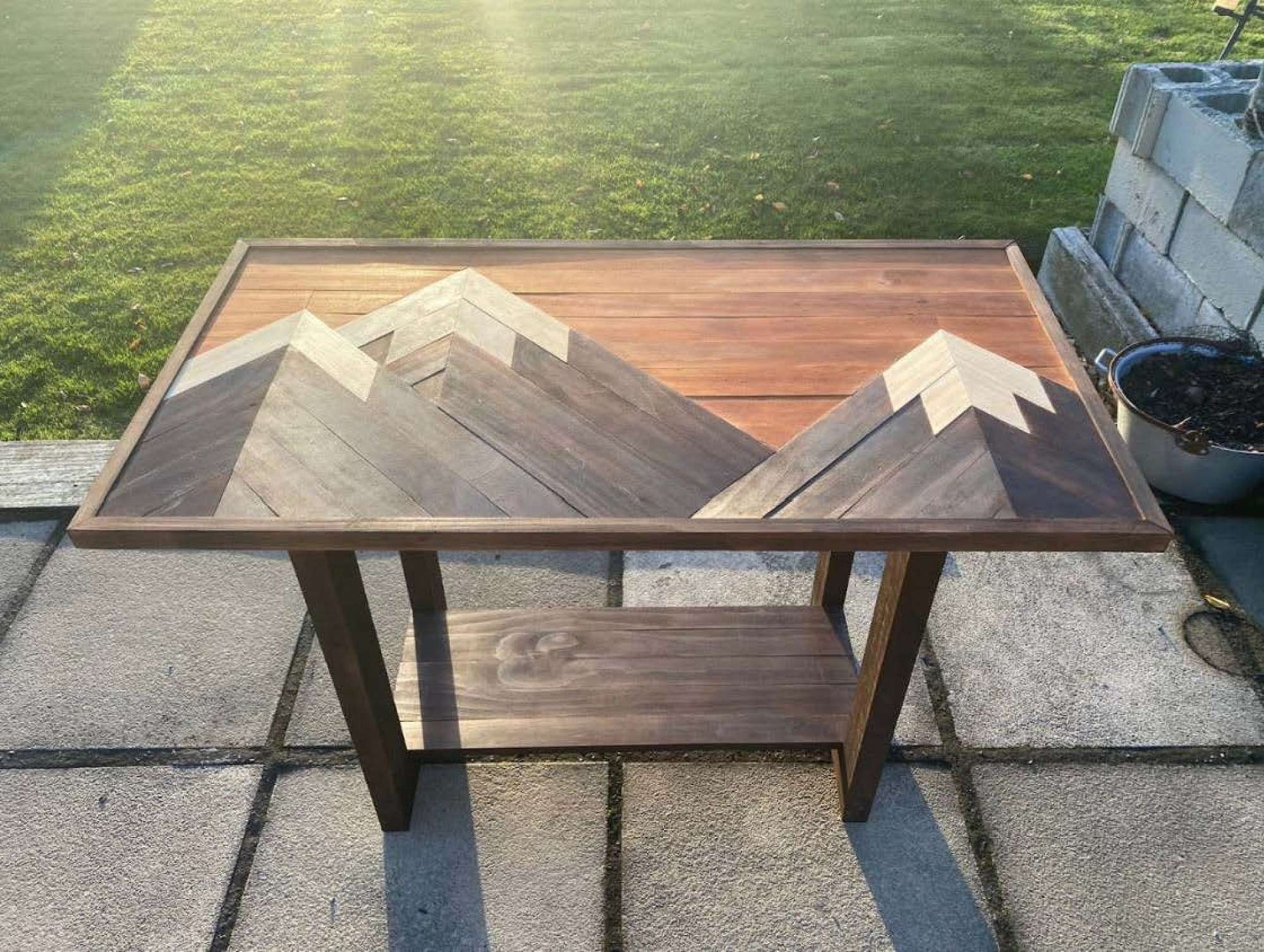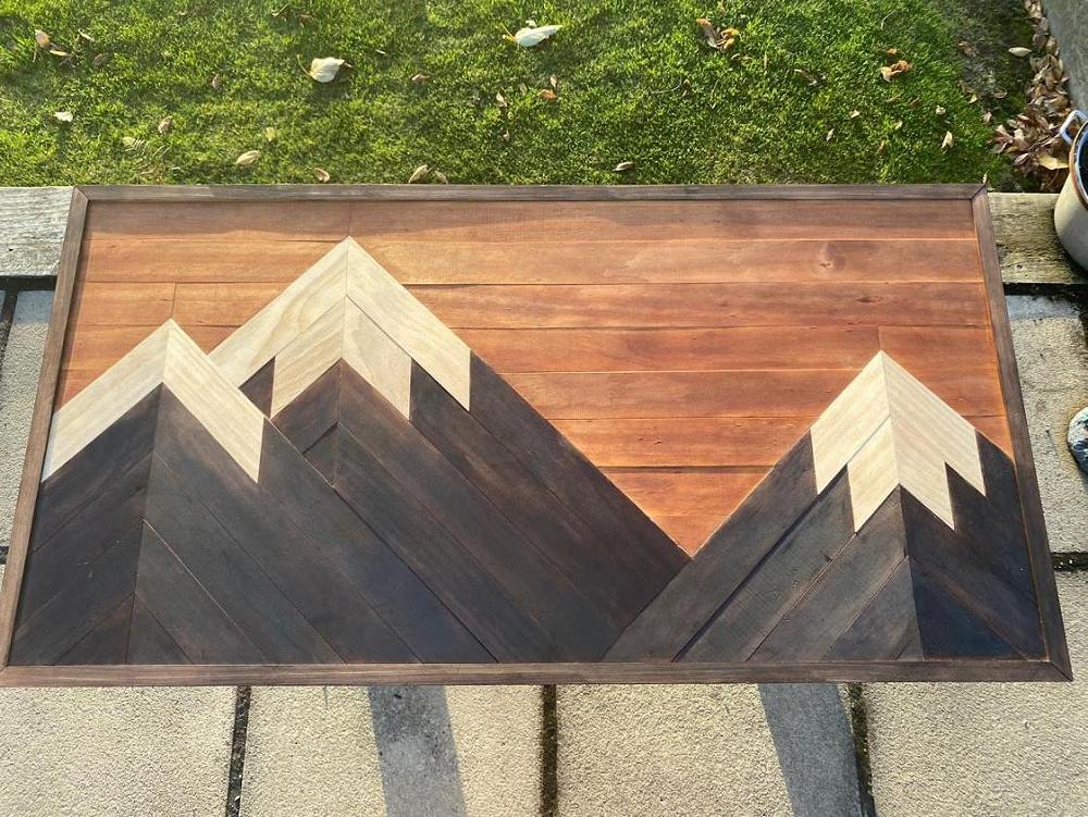 Given the opportunity to express her creative side has seen Makenzi Williams design and make an interchangeable mountain range scene - it can be either a tabletop or a wall hanging. Makenzi has created her mountain scene by staining the pine and cutting out a lot of mitre joints. The base of the table required a degree of accuracy to accommodate the top along with the strength required as a functional table.