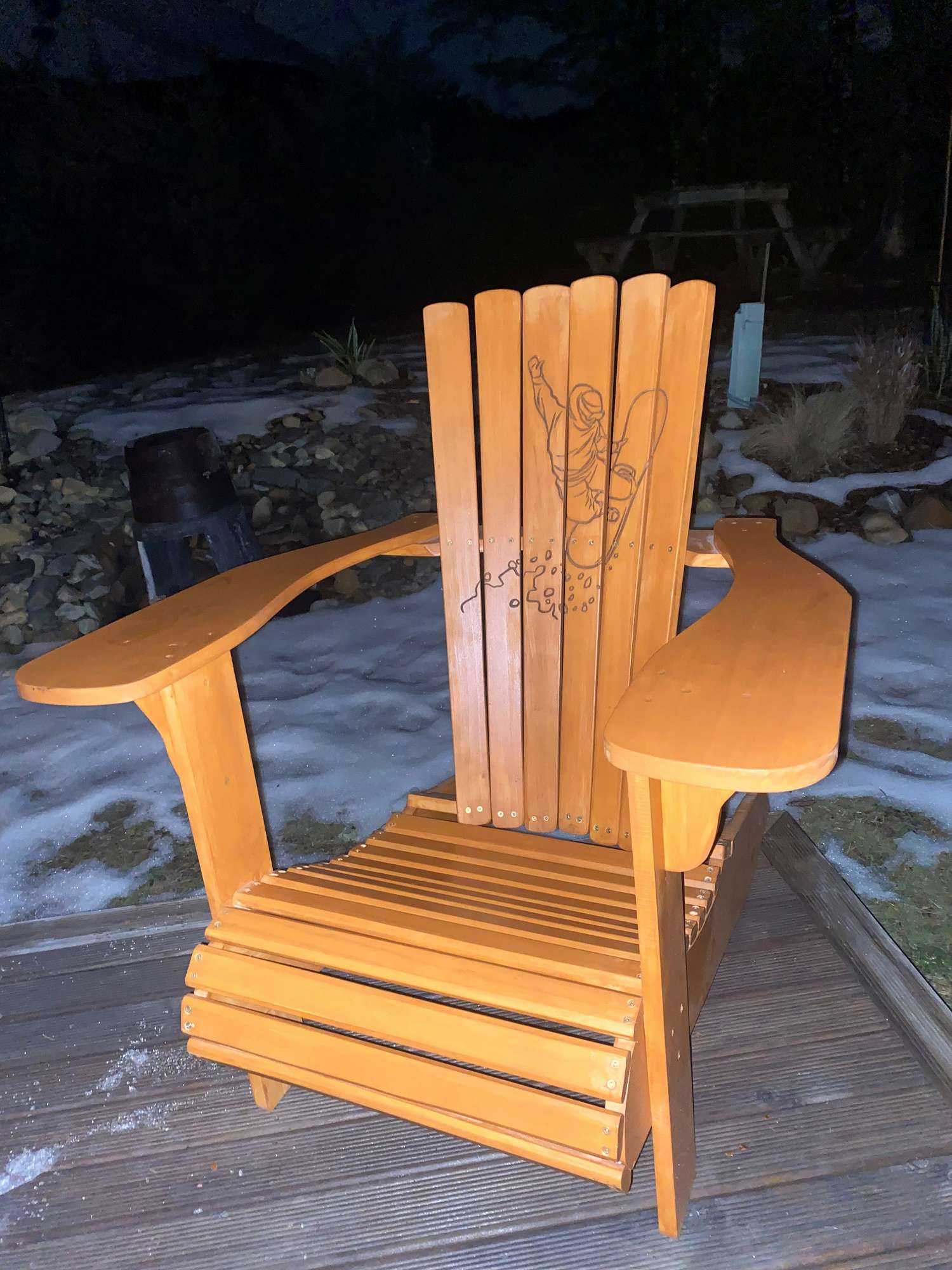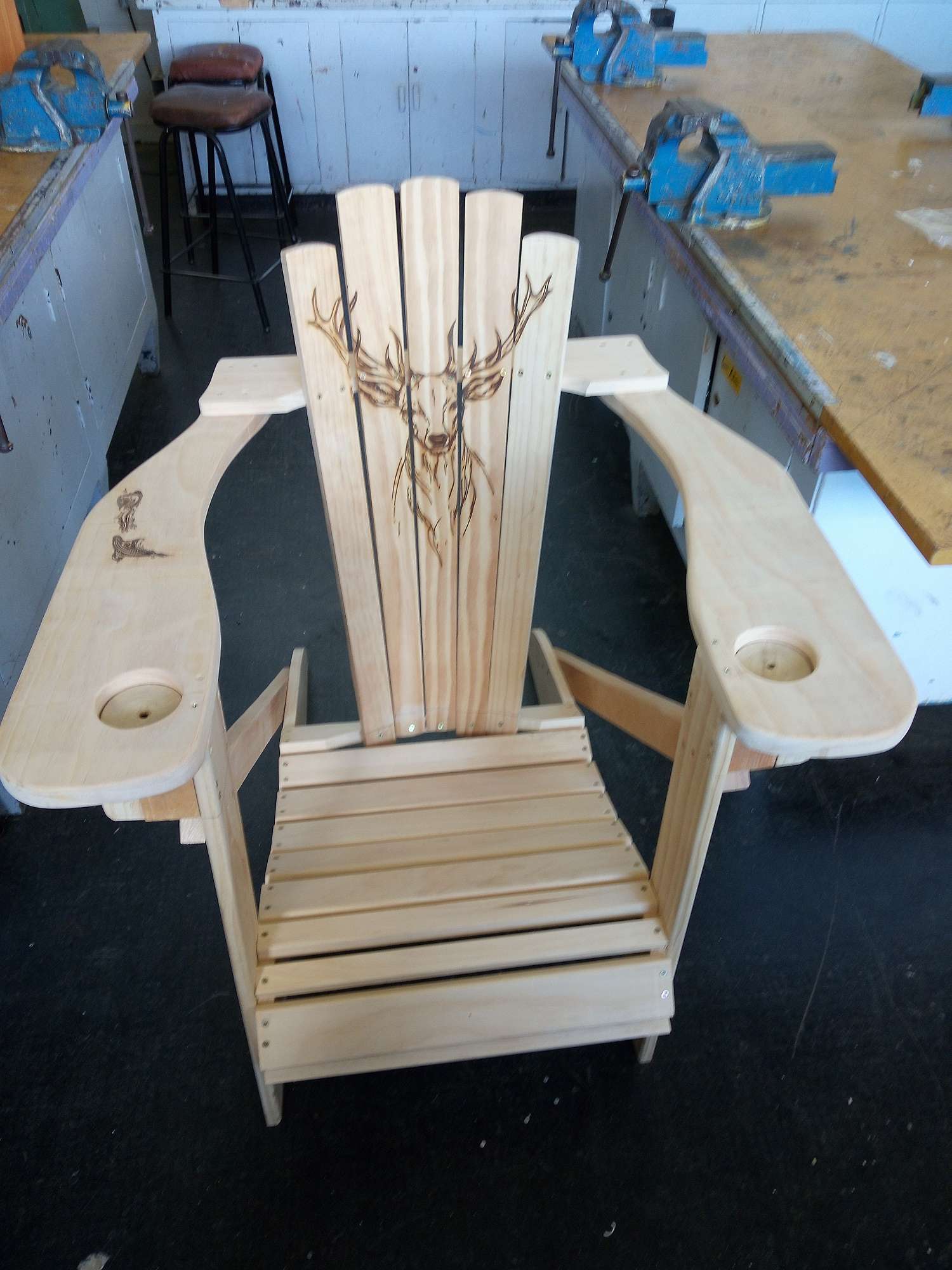 "For my first time in a woodwork class, I had the opportunity to create such a nice piece of work that I am extremely proud of. A cape cod chair. I was able to express my interests through the chair by using a special laser cutter to put a picture of a snowboard on it. I am looking forward to creating even better projects like this in the new building." Luka Parker