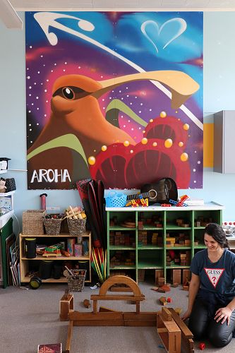 One of the donations was a very large artwork, which is now proudly displayed in the Preschool. The artwork is a special piece of art with a message about holding our heads high at this difficult time. It was painted by Aidan Walbaekken, a street artist from Wellington, live on the What Now TV show on the weekend following the attack on the Mosques. Through the imagery, it encapsulates messages of strength, being Kiwi, and being connected to family/whānau and loved ones. The presentation of the artwork was filmed by the What Now team on Wednesday 17th April, much to the excitement of many at the Preschool, and was later featured on the TV programme.
