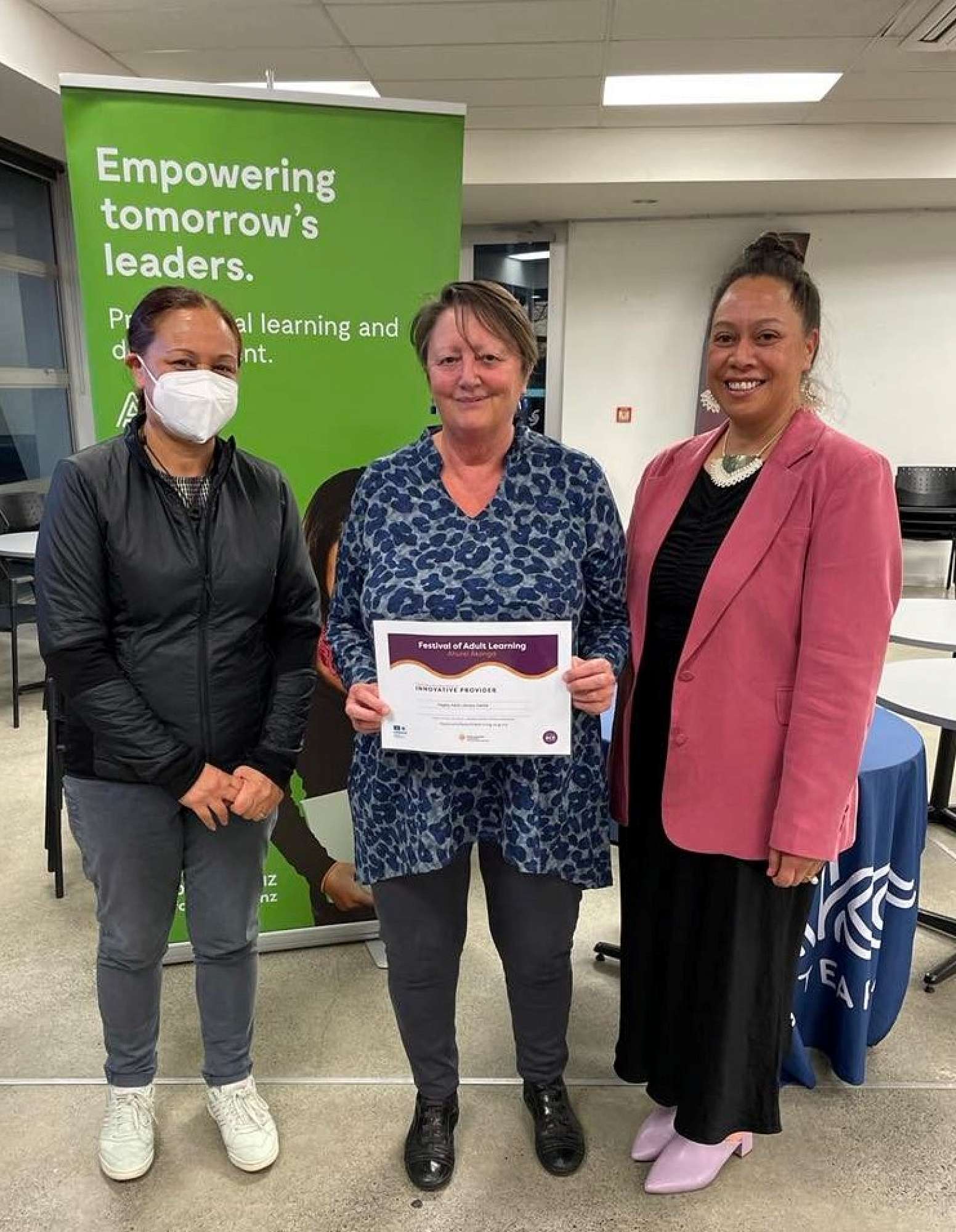 Joanna, Mariko and Anne-Marie from HALC, along with many other Canterbury ACE providers, attended a hui in the Hagley College Cafe on Friday, 9th September. HALC was thrilled to receive an ‘Innovative Provider’ award from ACE Aotearoa to acknowledge our contributions to adult learning in Christchurch Ōtautahi.