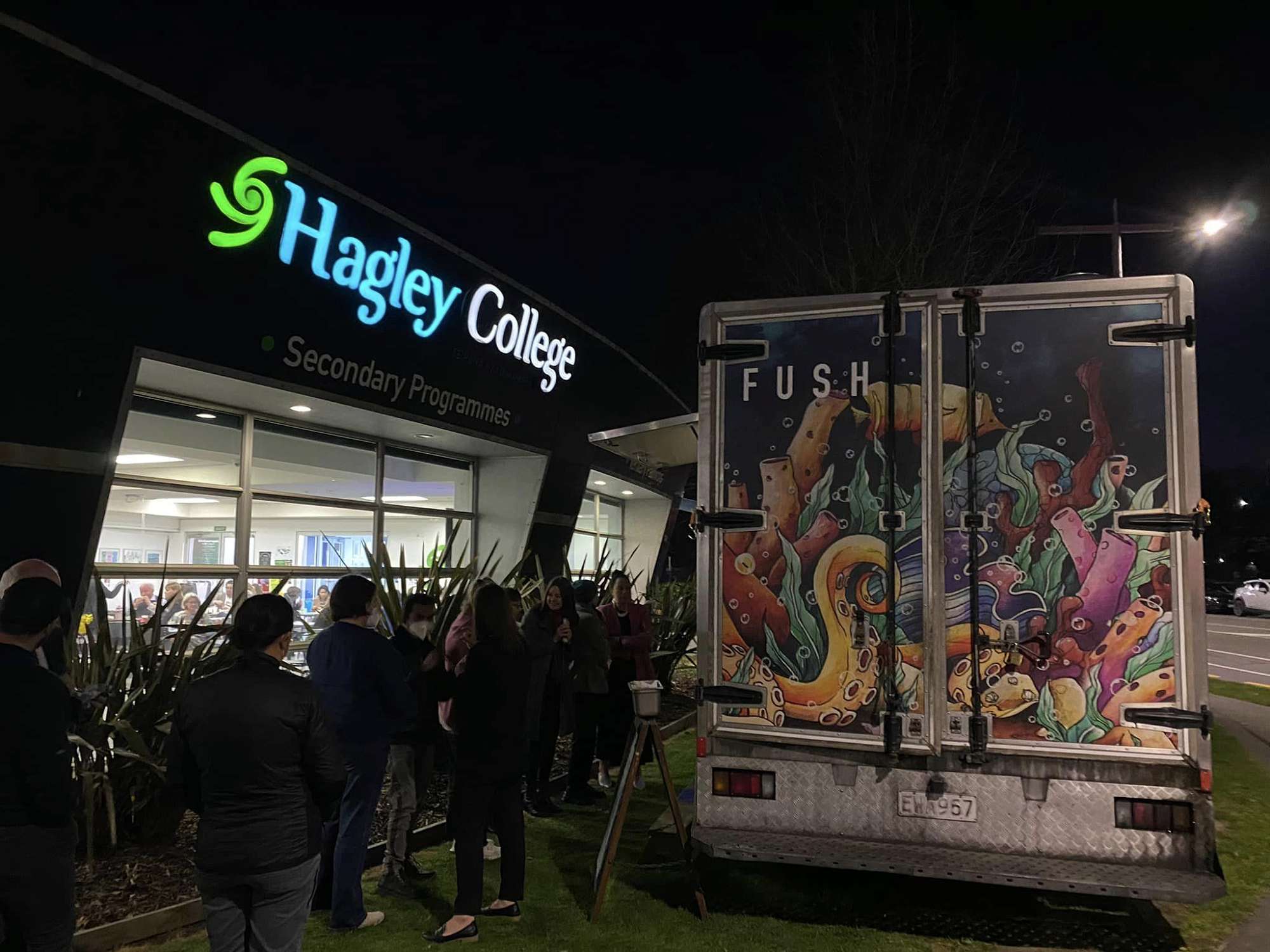 Anton Matthews, the owner of “FUSH” and champion of Te Reo Māori, was guest speaker for the evening. Anton brought along his mobile fish and chip shop, The FUSH waka, and provided a delicious dinner for us all.