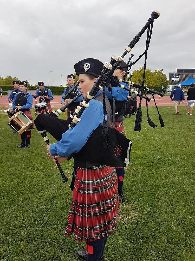 Another major interest in Jasmine’s life is playing the bag pipes. She is the Pipe Band leader for the Juvenile Caledonian Society Pipe Band. This is a big deal! Jasmine started playing the bagpipes aged 10. Her grandfather had a set of bagpipes that they found out were over 100 years old. They were made in Scotland, include sections of elephant ivory, and they were the exact pipes that were used to pipe out the ships from Lyttelton Harbour during World War II. Jasmine absolutely loves piping, and practicing for competitions, even though it’s a big time commitment. She placed 4th out of 24 pipers in the recent Labour weekend solo competition.