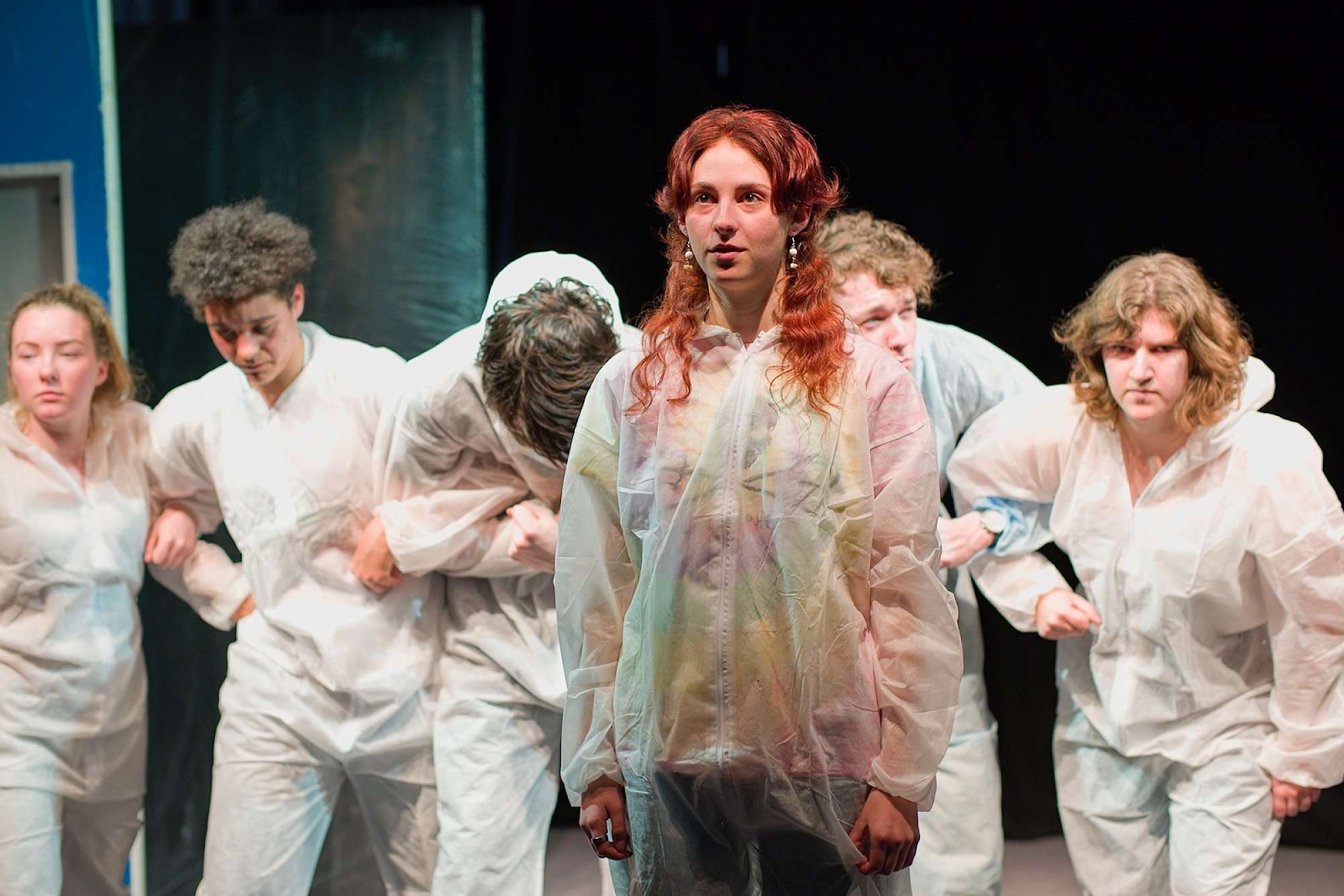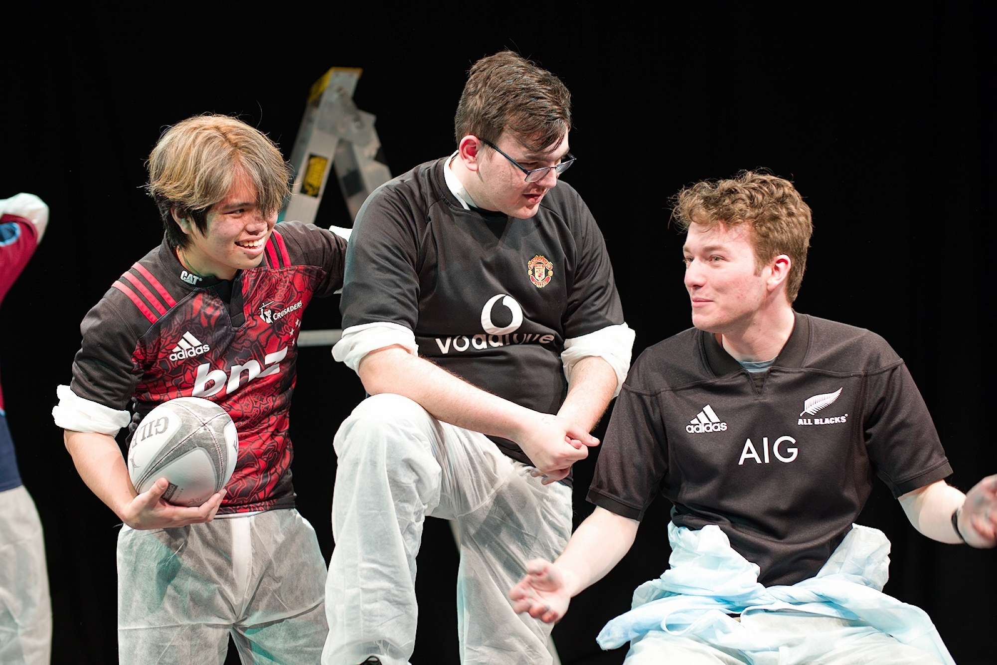 In amongst our regular schedule of theatre and film studies, we have had visiting tutors come and share their specialities with us. Pedro Ilgenfritz traveled down from Unitec in Auckland to share his knowledge of mask work over a very rich two days, and we are lucky to be receiving Toi Whakaari's Grace Hoete next week, a past HTC student! Cameron Mattox used his superpower of sleuthing out fantastic contemporary scripts to bring Duck Duck Goose by a young Irish playwright, Caitríona Daly, to the Open Stage Studios.
