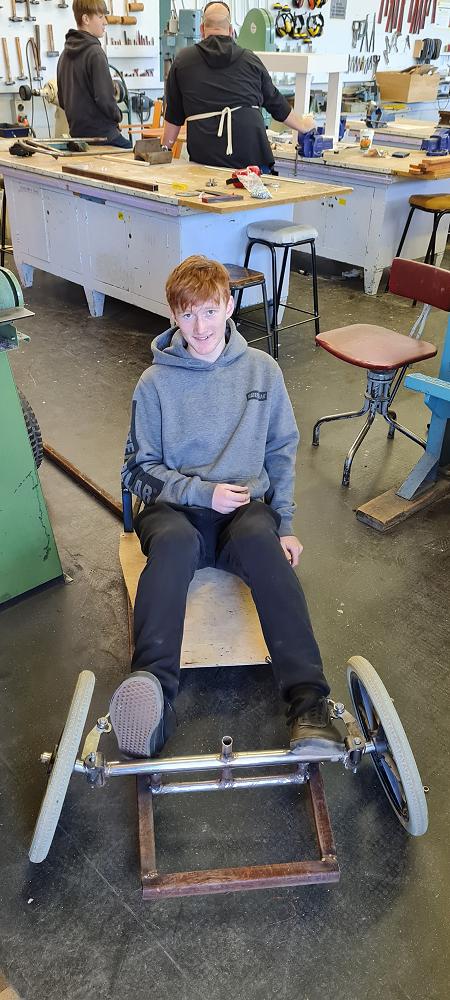 The vehicle will be entered into the 2022 EVolocity competition. Rod is a retired engineer who has built several of these vehicles. He is helping our students with their build and advising them on the competition. The vehicle is made from recycled parts including bike parts donated by Outdoor Ed. Tobi Carlyle is another student currently involved in the project designing an energy monitoring system. The EVolocity program is a collaboration between the Hard Materials and Electronics technology learning areas. Aaron and Oscar are moving to Ara in Term 3 but they have left a legacy for other students which will be greatly appreciated.