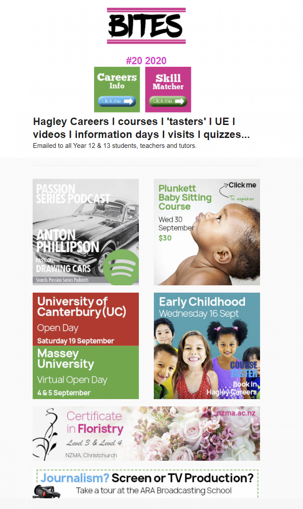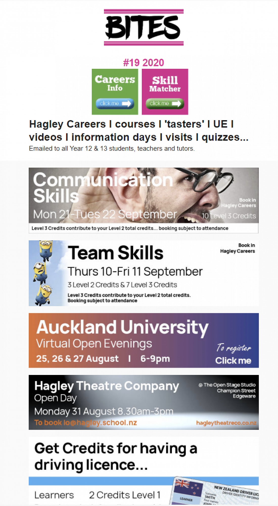 Check your school email every week for your copy of BITES. Available to Year 12 & 13 Hagley students.