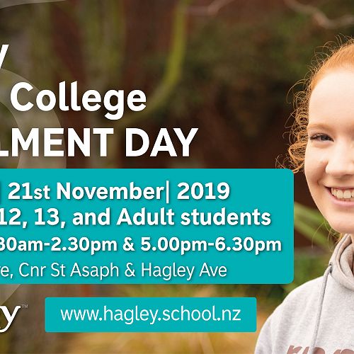 Visit this articleThursday 21st November is the day for all new Year 12, 13 and Adult students to enrol at Hagley for 2020.