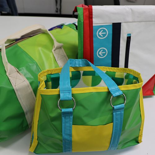 Visit this articleOne of the first projects in the School of Fashion 2021 was to use the discontinued Hagley banners to make a utility bag.