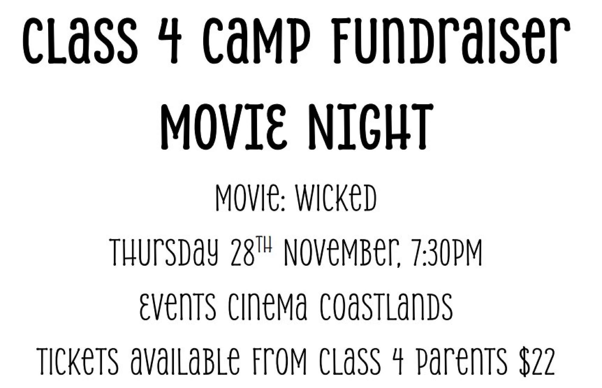 Movie night fundraiser Office - Te Rā School — November 7th, 2024 Support class 4's fundraising for their school camp