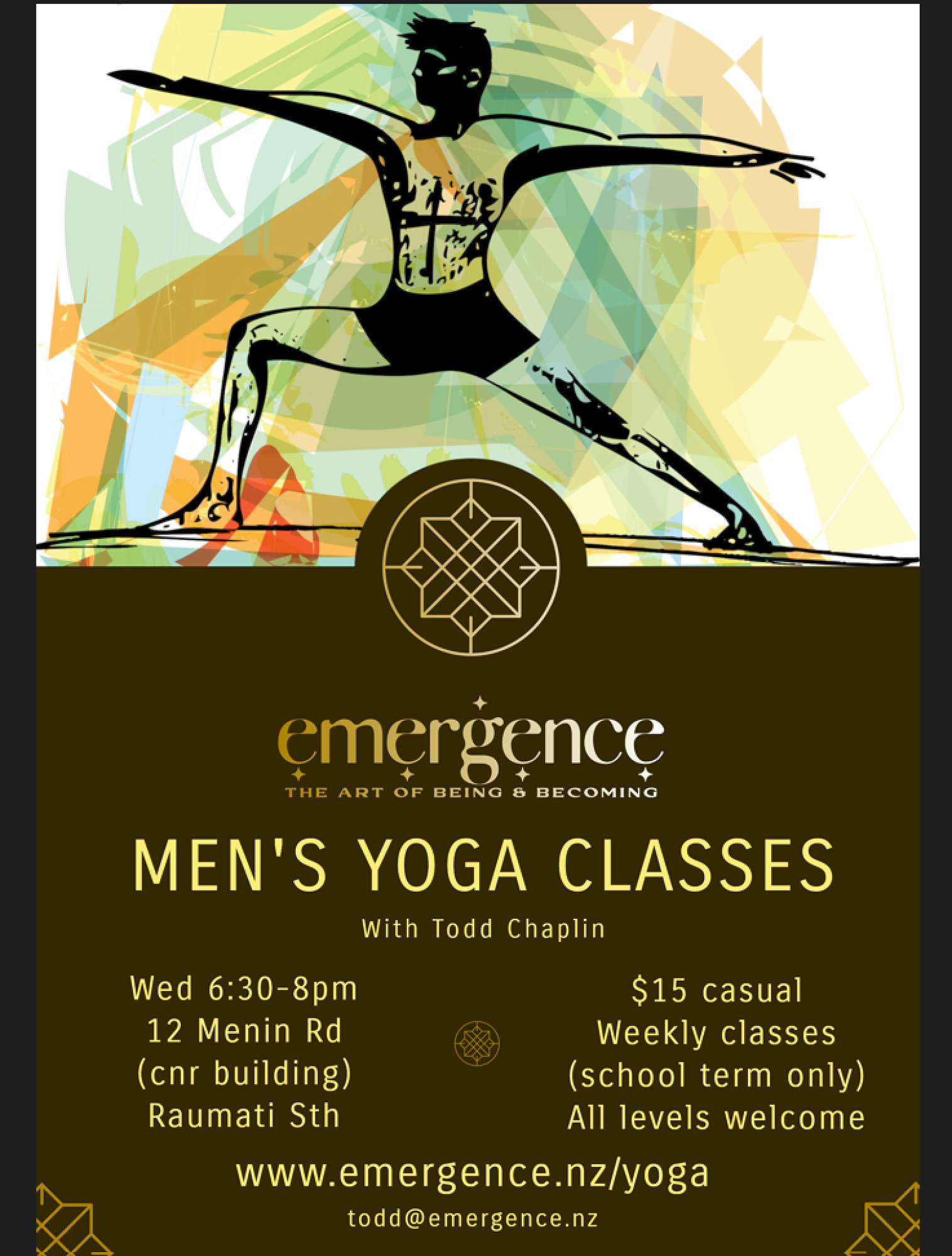 My name’s Todd Chaplin, and I am the teacher at Emergence Yoga, offering group classes out of a small studio in Raumati South. I have practiced Hatha Yoga for the past 15 years, training in India and New Zealand, and welcome all abilities to join me in this exploration.