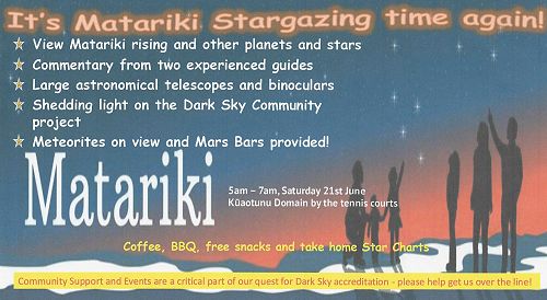 On Saturday morning from 5 a.m. at the Kuaotunu Domain there is a community event for a bit of Matariki Star gazing.