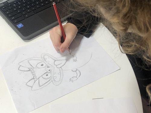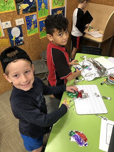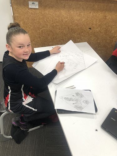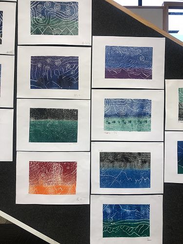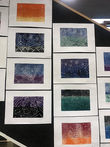 The Toroa tamariki are buzzing from their experience engaging in Matariki printmaking. They loved experimenting with printing foam and inks. Olivia and Sophia explained the process and said it was great that they were given the freedom to personalise their designs and colour combinations while experimenting with a different art medium. They talked about how difficult it was to picture what their image would look like because it printed in reverse. These were so impressive that they have been presented in the school Office Foyer. These students are now developing wonderful taniwha kites based on two shared books - The Legend of Matariki and the Seven Kites of Matariki. It is wonderful to learn how Toroa tamariki are developing their ideas in response to various motivations and using a range of materials and processes to develop artwork.