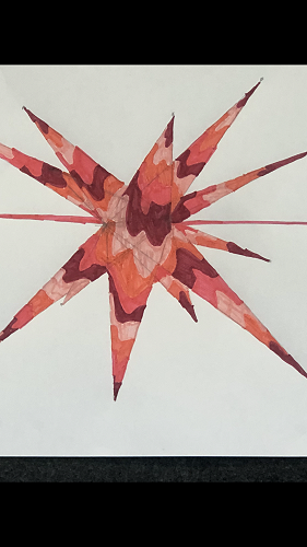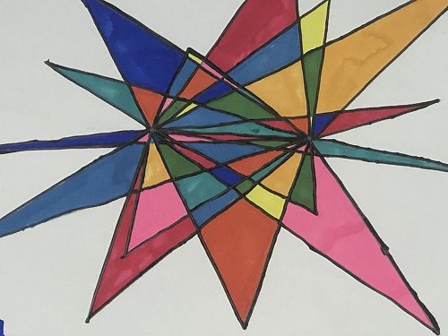 I was impressed with how well Luke described the process of making Matariki stars in the Korimako Learning Hub. This was a geometric process using points, measurement and layered triangles. They then coloured these in using different patterns and colours for interest. I look forward to seeing more of these as they are completed. It is wonderful to see them experimenting with maths in art.