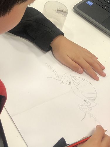 Kiwi tamariki were bursting with pride about their amazing artwork. I loved hearing all about how Māui snared the sun in a Māori myth they had been reading. The tamariki told me how Māui used flax to try to slow down the sun, and the sun got angry about this. Mark talked about why the sun in his work has a funny, angry face and many patterns all over it. Jiaqu wanted to give the sun a happy face because she likes smiley faces. She talked about the lines and rope she tried to create with patterns and shapes. These tamariki did very well to share ideas communicated through their art and respond to inspiration from the Māori myth they were learning.