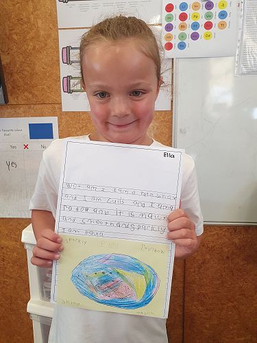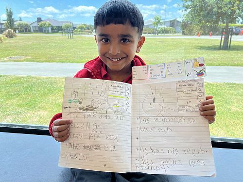 Kiwi Bealing and Kiwi Roberts’ focus has been on using adjectives in their writing, incorporating lots of describing words to make their writing more interesting for the reader. They have been exploring their five senses with a focus on the beach which has inspired lots of creative writing. Tamariki have also enjoyed used picture prompts to inspire creative thinking and provide opportunities to use adjectives.