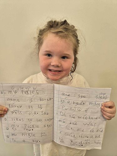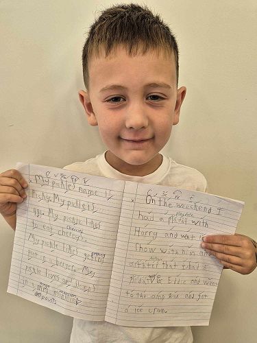 Kiwi Brown, Kiwi Jackson and Kiwi Ngatai tamariki have been taking care of a screaming pickle which has been a very engaging topic for Writing. They have had challenges to complete which included writing descriptions about their new wee friend. They also created their own story using a pickle image and dipped their toes back into instruction writing where they have written steps about how to make their own pickles.