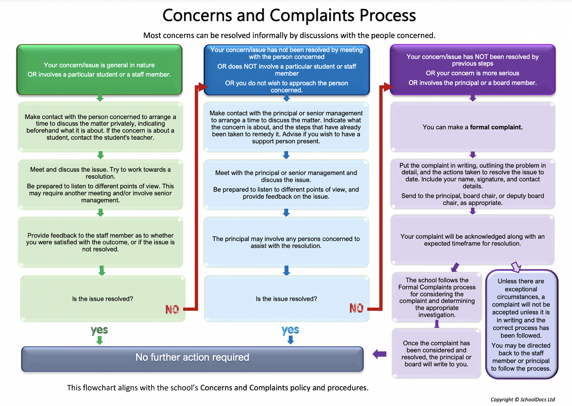 If you have an issue or concern, we recommend you follow the comprehensive guidelines for raising concerns and complaints on our website under Policies and Procedures.