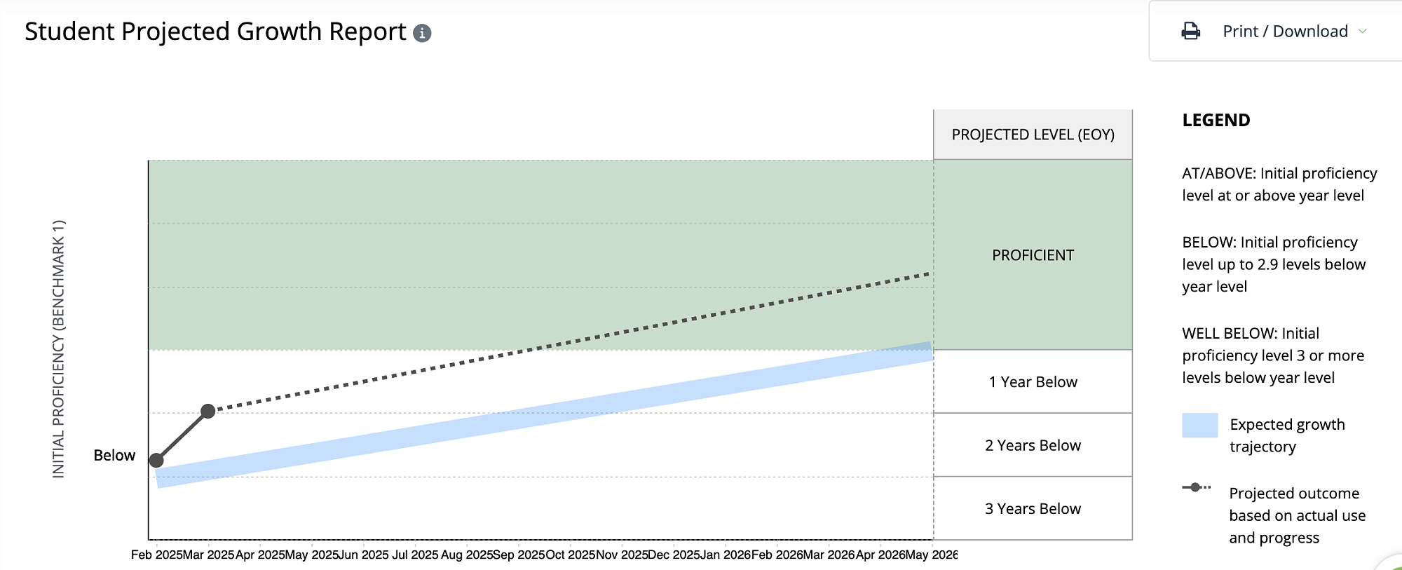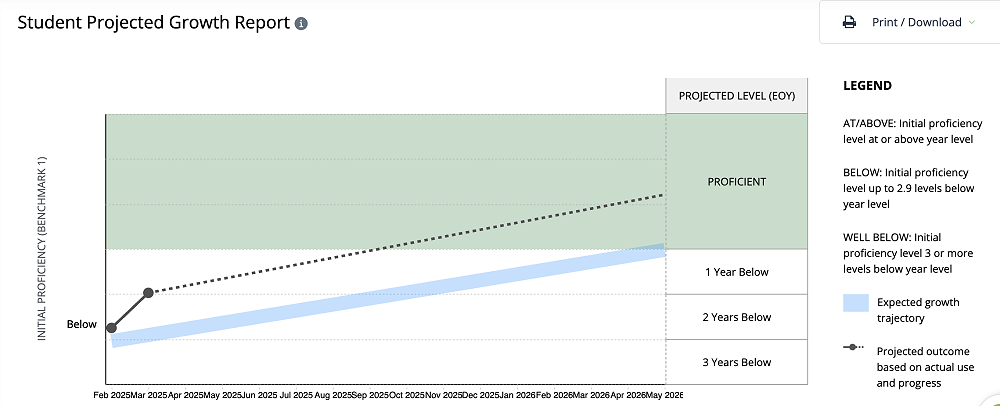 Please note a projection graph is only available for students using the Reading Plus programme.