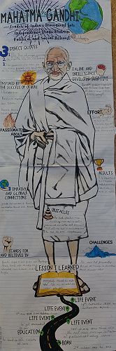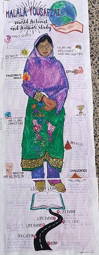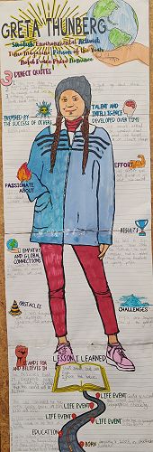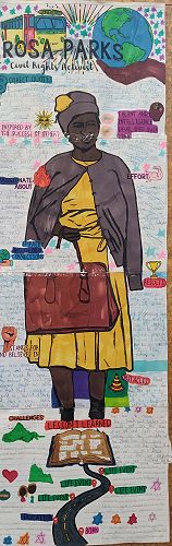 Students began by researching famous change makers from recent history. They chose to look into either Nelson Mandela, Rosa Parks, Malala Yousafzai, Greta Thunberg, Mahatma Ghandi or Martin Luther King Jr after a brief introduction about each person. The researched important life events, their inspirations, obstacles, beliefs and much more.