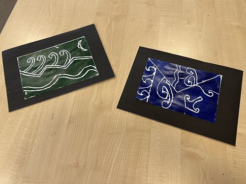 Meanwhile our tamariki have also been learning about kowhaiwhai patterns in Māori cuture and their connection to the land, nature and iwi (tribes). The students drew their own kowhaiwhai patterns that represent themselves and their whānau. Then they carved their designs onto polystyrene boards and used printing ink and rollers to make prints of their designs. We will display these in our hub for you to see in the next few weeks.