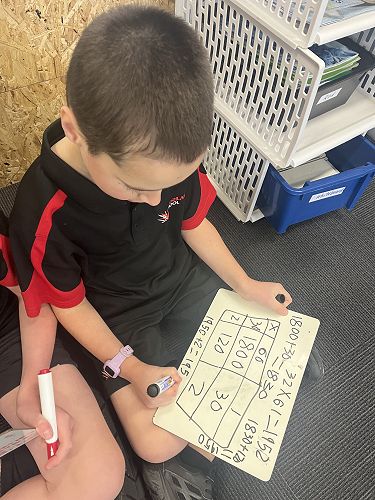 Tamariki have explored ways to use their known facts to solve complex multiplication problems and they are able to apply this strategy when interpreting word problems based around our science topic.