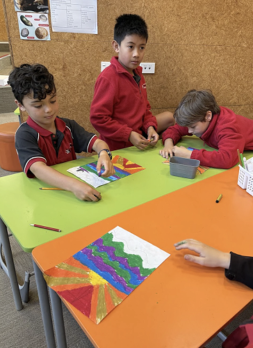 To bring this learning to life, we decided to express it through art. Using pastels, the students created wave and sun designs, reflecting the tidal environments we have been studying. This artistic process helped students visualise the connection between tidal zones and the environments we've explored.