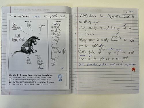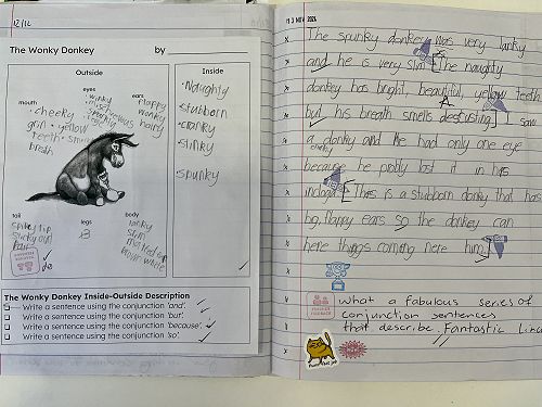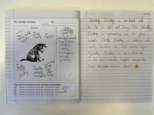 We have also been practising using great descriptive language in our own writing. We have thought about carefully choosing strong verbs and adjectives to add interest to our writing and to give as much detail to the reader as possible. We especially enjoyed our character descriptions of The Wonky Donkey and The Very Cranky Bear.