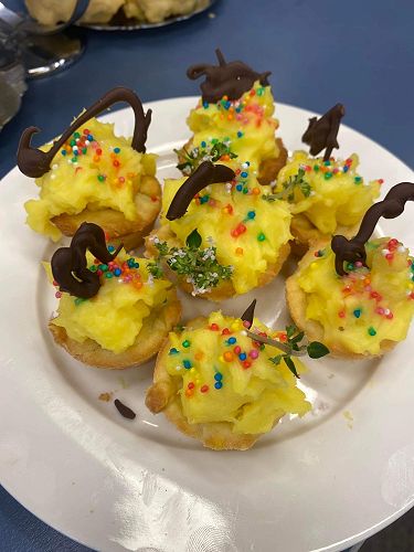 The first round was a mystery challenge where all the teams had to make the same thing; this was a custard pie. For the second option they had to make a sandwich which could be of their choice; sweet or savoury. Finally, for the last item, the students could cook anything of their choice.
