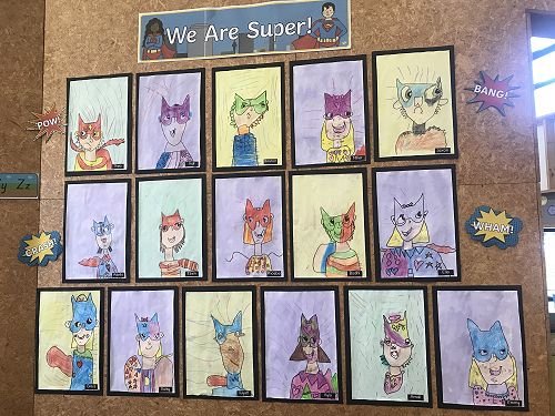 We are learning to draw a self portrait in a superhero style.